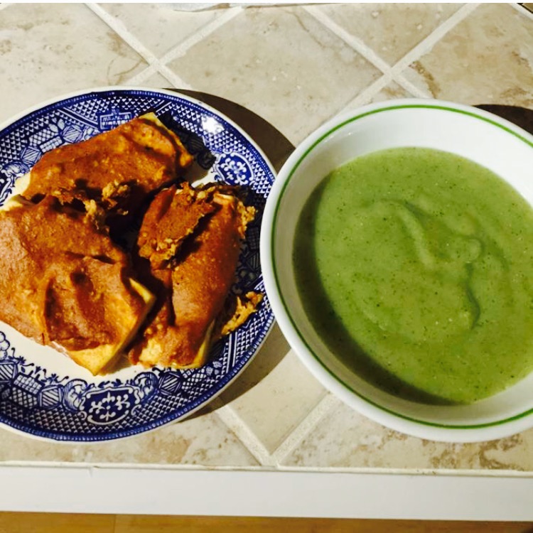 Dinner was a bowl of creamy broccoli potato soup with baked cashew BBQ sauce tofu.